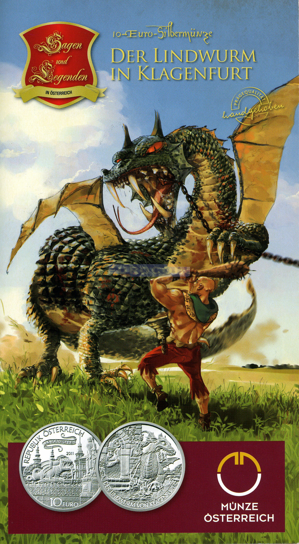 Австрия, 10 евро 2011 Линдворм в Клагенфурте