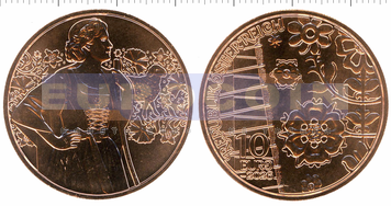 Австрия 10 евро 2026, Лоден - валяная шерстяная ткань альпийских фермеров и охотников - третья монета из серии «Национальная одежда Австрии»