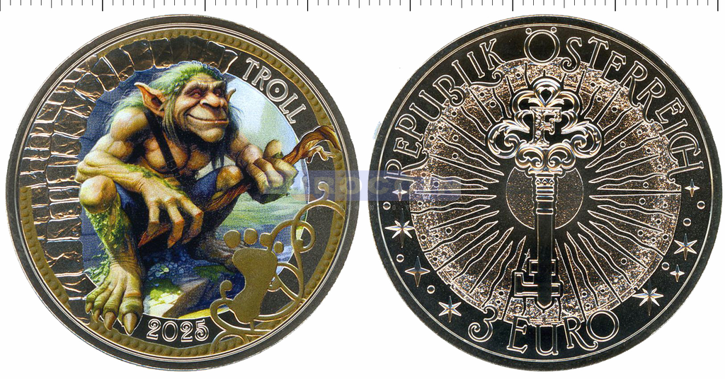 Австрия 3 евро 2025, «Troll» - фантастические и мифические существа