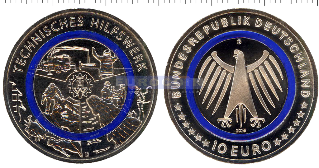 Германия 10 евро 2025, THW - Агентство по оказанию технической помощи - монета серии «На службе общества» (мон. двор G)