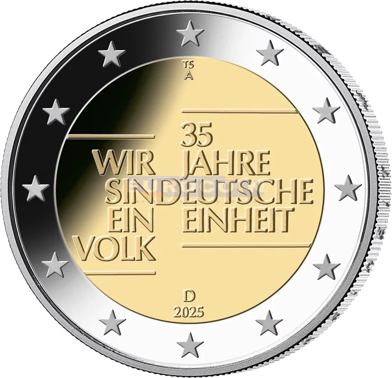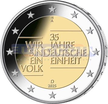 Германия 2 евро 2025, 35-летие объединения Германии, любой мон. двор на мой выбор.