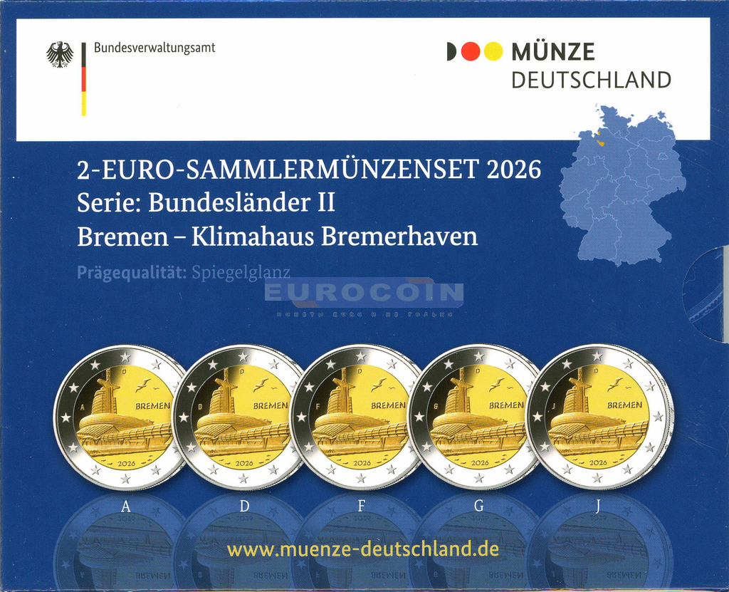 Германия 2 евро 2026, Бремен - это город на реке Везер в северо-западной части Германии (A,D,F,G,J) PROOF