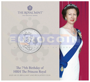 Великобритания 5 фунтов 2025, 75 лет со дня рождения Принцессы Анны