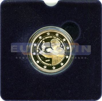 Греция 2 евро 2025, 100 лет со дня рождения Микиса Теодоракиса - ПРУФ