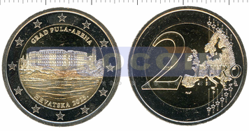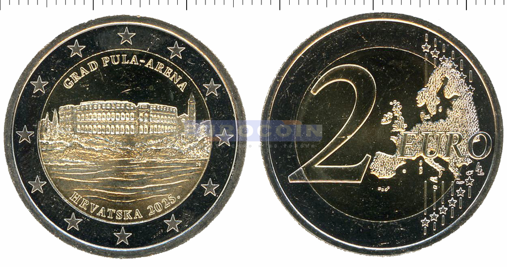 Хорватия 2 евро 2025, Амфитеатр Пулы - памятник древнеримской истории и архитектуры