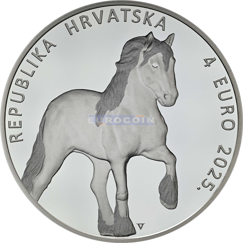 Хорватия 4 Евро 2025, Хорватская хладнокровная лошадь - это порода, адаптированная к условиям пастбищ в Хорватии, известная своим спокойным нравом, силой и выносливостью.