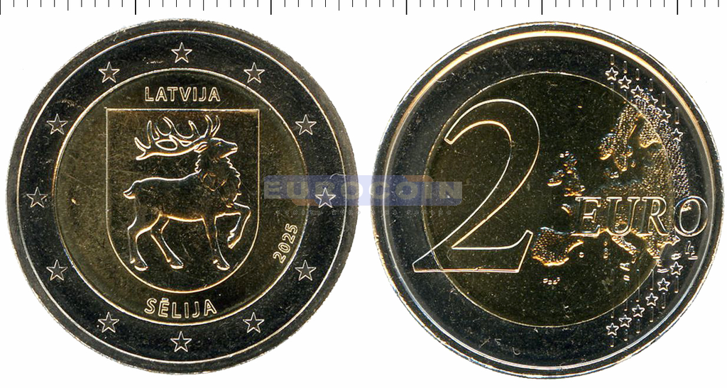 Латвия 2 евро 2025, Селия - монета из серии, регионы Латвии