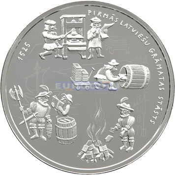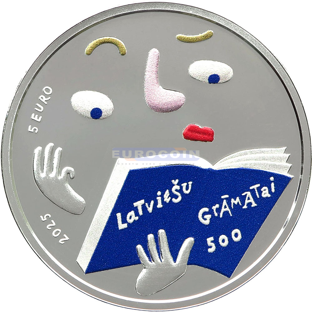 Латвия, 5 евро 2025, 500 лет со дня издания первой книги на латышском языке.