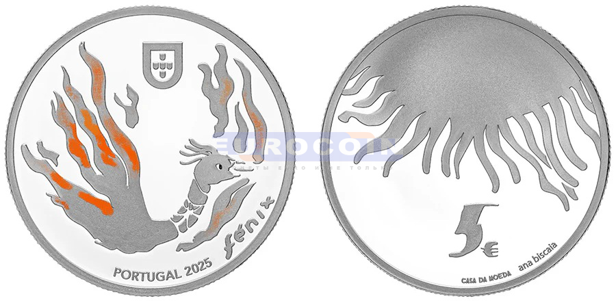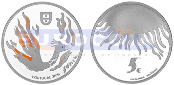 Португалия 5 евро 2025, Феникс - герои и существа мифологии PROOF