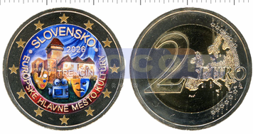 Цветная монета, Словакия 2 евро 2026, Тренчин - Культурная столица Европы