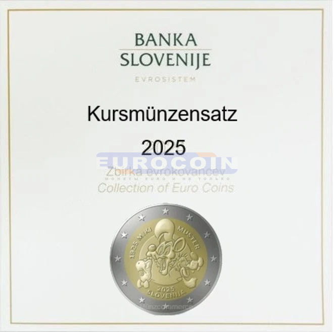 Словения, официальный годовой набор 2025 BU (10 монет) - 1 цент - 2 евро + 2 евро (Мики Мустер) + 3 евро (Нова-Горица)