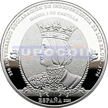 Испания 10 евро 2026, Изабелла I Кастильская - монета из серии «250 лет провозглашения независимости Соединенных Штатов»