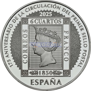Испания 10 евро 2025, 150 лет со дня первой марки в Испании