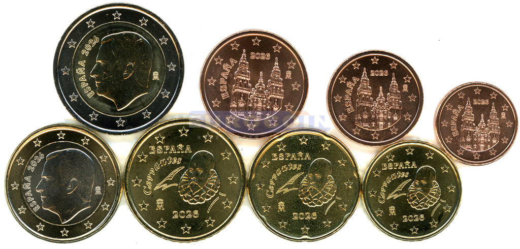 Испания, годовой евро набор 2026 UNC (монеты из роллов)