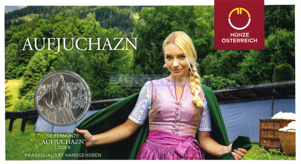 Австрия 10 евро 2026, Лоден - валяная шерстяная ткань альпийских фермеров и охотников - третья монета из серии «Национальная одежда Австрии» BU