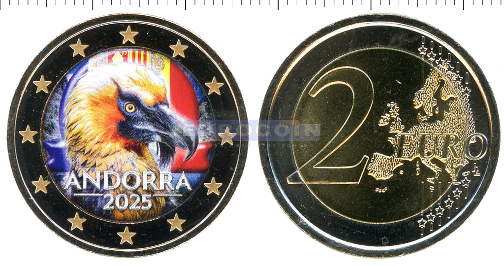 Цветная монета, Андорра 2 евро 2025, Бородач