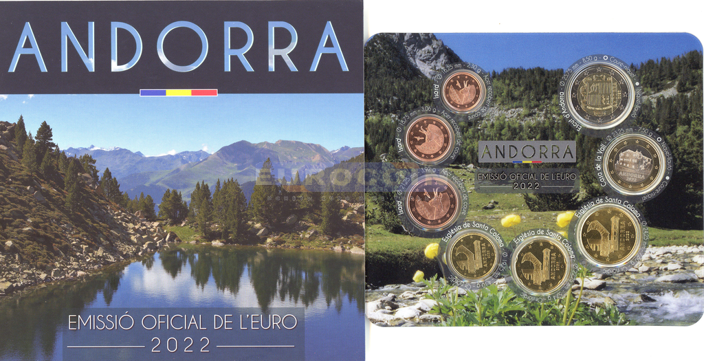 Андорра, официальный годовой набор евро 2022 BU (8 монет)