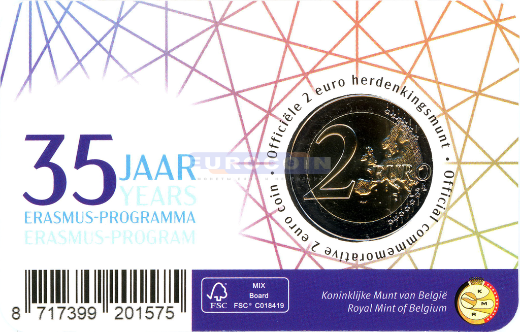 Бельгия 2 евро 2022, 35 лет Программе ERASMUS - BU