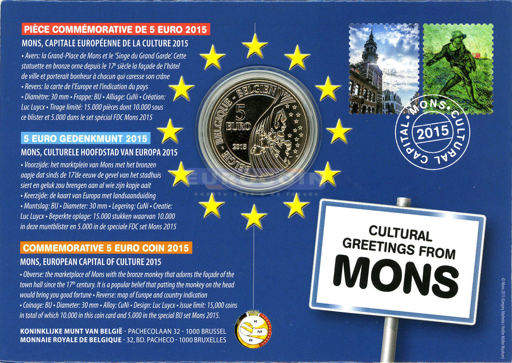 Бельгия 5 евро 2015, Культурная столица - Монс