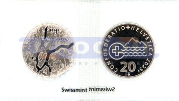 Швейцария 20 франков 2025, Лугано - озеро на южном склоне Альп