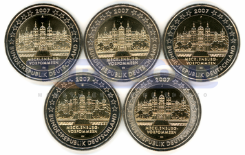 Германия 2 евро 2007, Вторая монета серии «Федеральные земли Германии» — Мекленбург—Передняя Померания (Шверинский Замок), все монетные дворы (A,D,F,G,J)