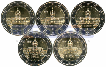 Германия 2 евро 2018, Тринадцатая монета серии «Федеральные земли Германии» — Берлин (Дворец Шарлоттенбург), все монетные дворы (A,D,F,G,J)