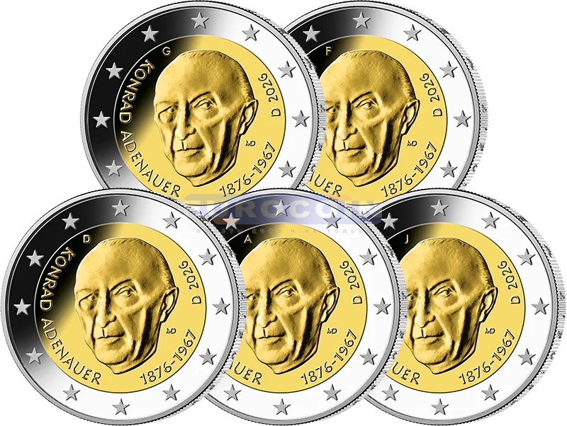 Германия 2 евро 2026, Конрад Аденауэр - немецкий государственный и политический деятель (A,D,F,G,J)