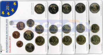 Германия, официальный годовой набор евро 2013 (5 х 9 монет), все монетные дворы (ADFGJ).