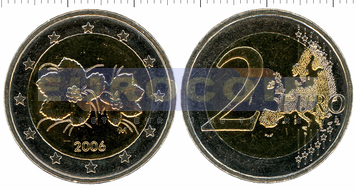 Финляндия 2 евро 2006, монета с ошибкой (новая карта). Монета из обращения !