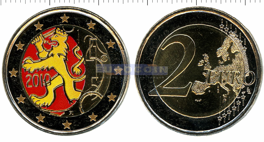 Цветная монета, Финляндия 2 евро 2010, 150 лет финской марке