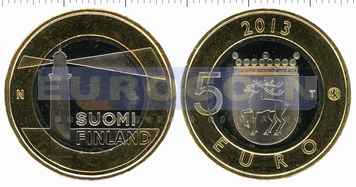 Финляндия 5 евро 2013, третья монета из серии регионы Финляндии, Аландские острова - Маяк на острове Сельскер