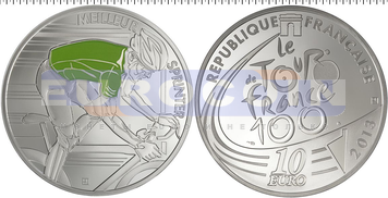 Франция 10 Евро 2013, сотая велогонка «Tour de France», зеленое трико