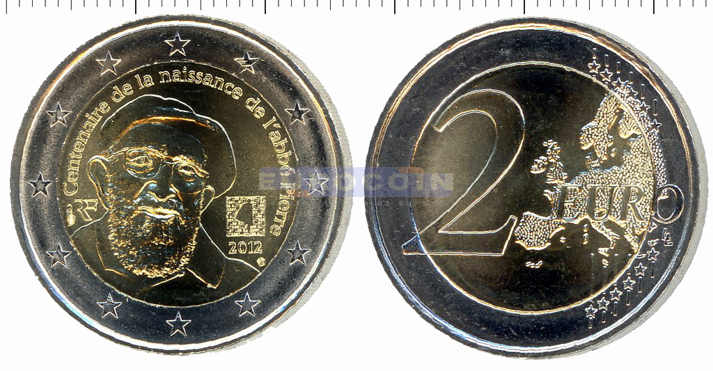 Франция 2 евро 2012, 100 лет со дня рождения Аббата Пьера
