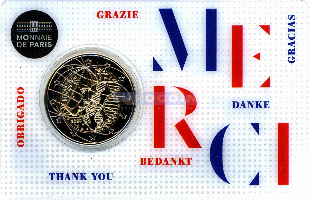Франция 2 евро 2020, Медицинские исследования, мотив коинкард «MERCI»