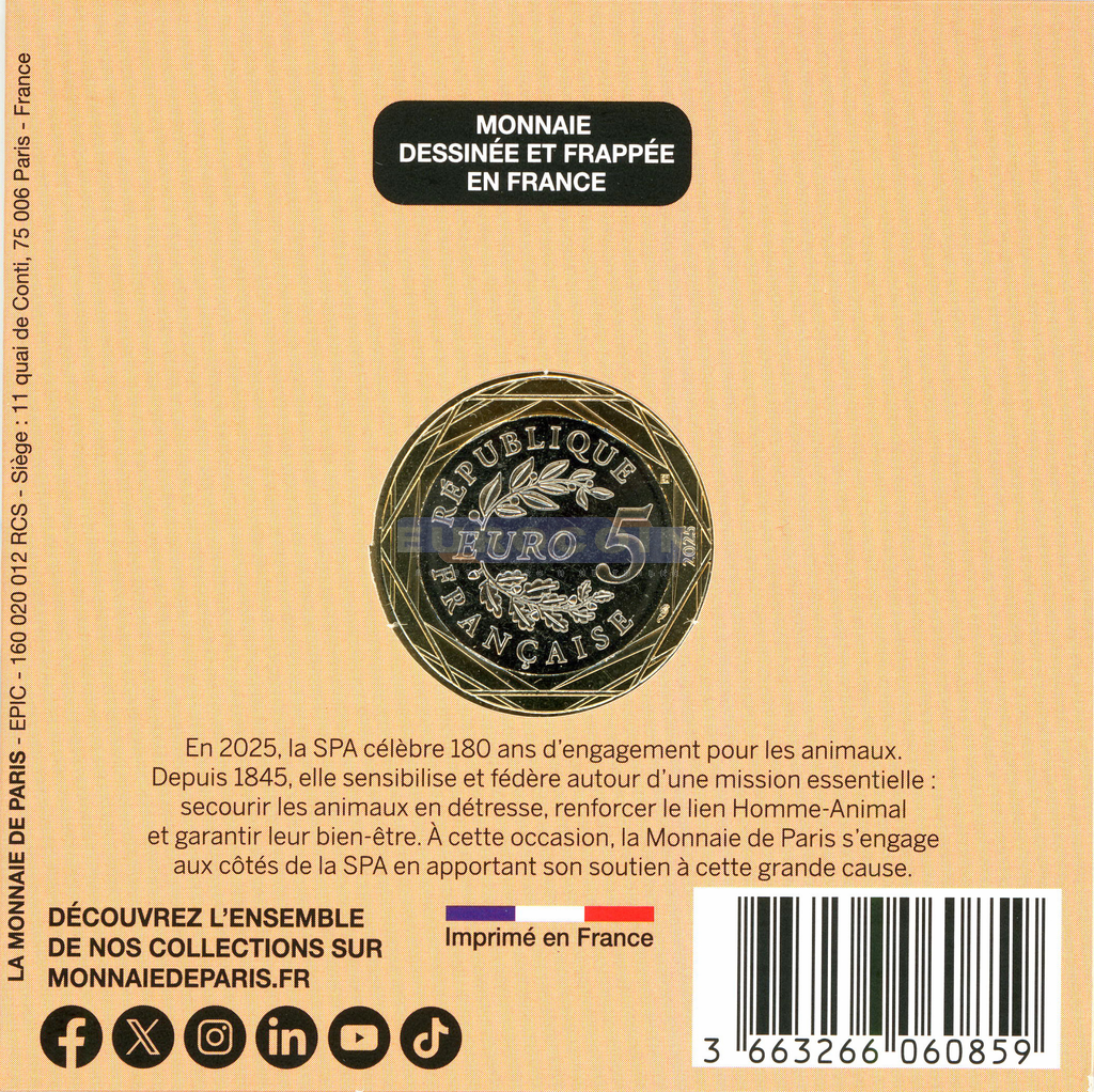 Франция 5 Евро 2025, Любимые животные французов - Кролик