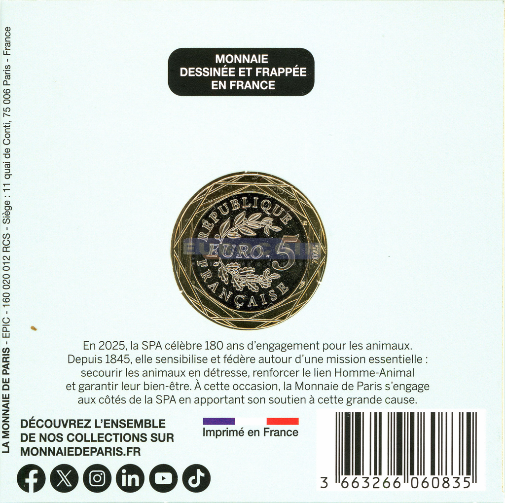 Франция 5 Евро 2025, Любимые животные французов - Кошка