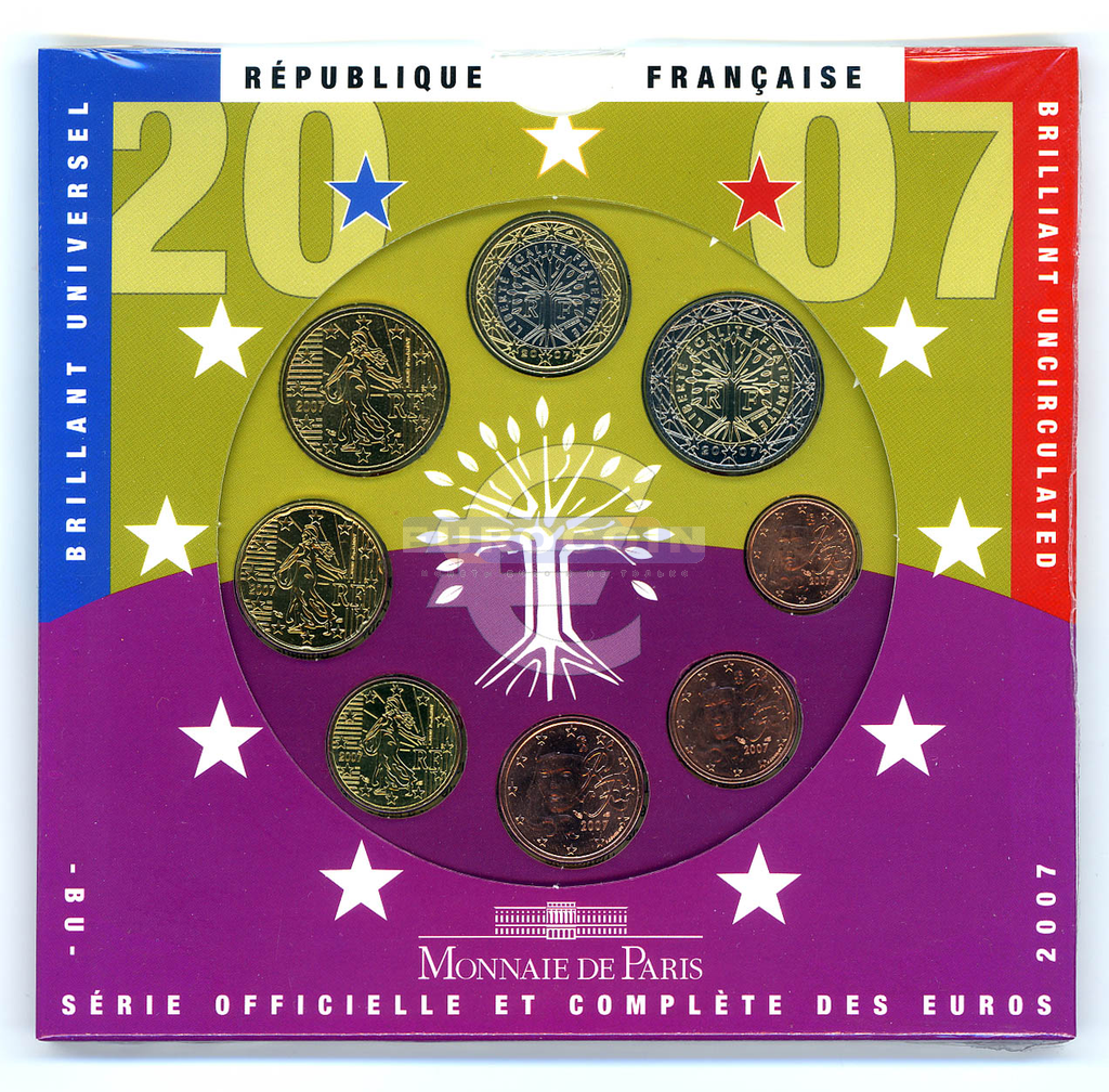 Франция, официальный годовой набор евро 2007 BU (8 монет)