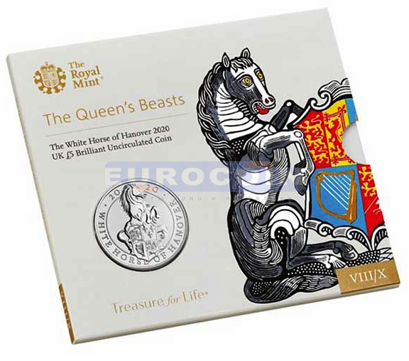 Великобритания, 5 фунтов 2020, Ганноверская Лошадь - геральдические животные Великобритании