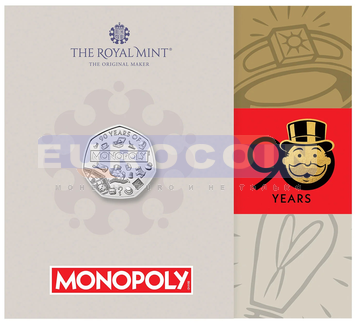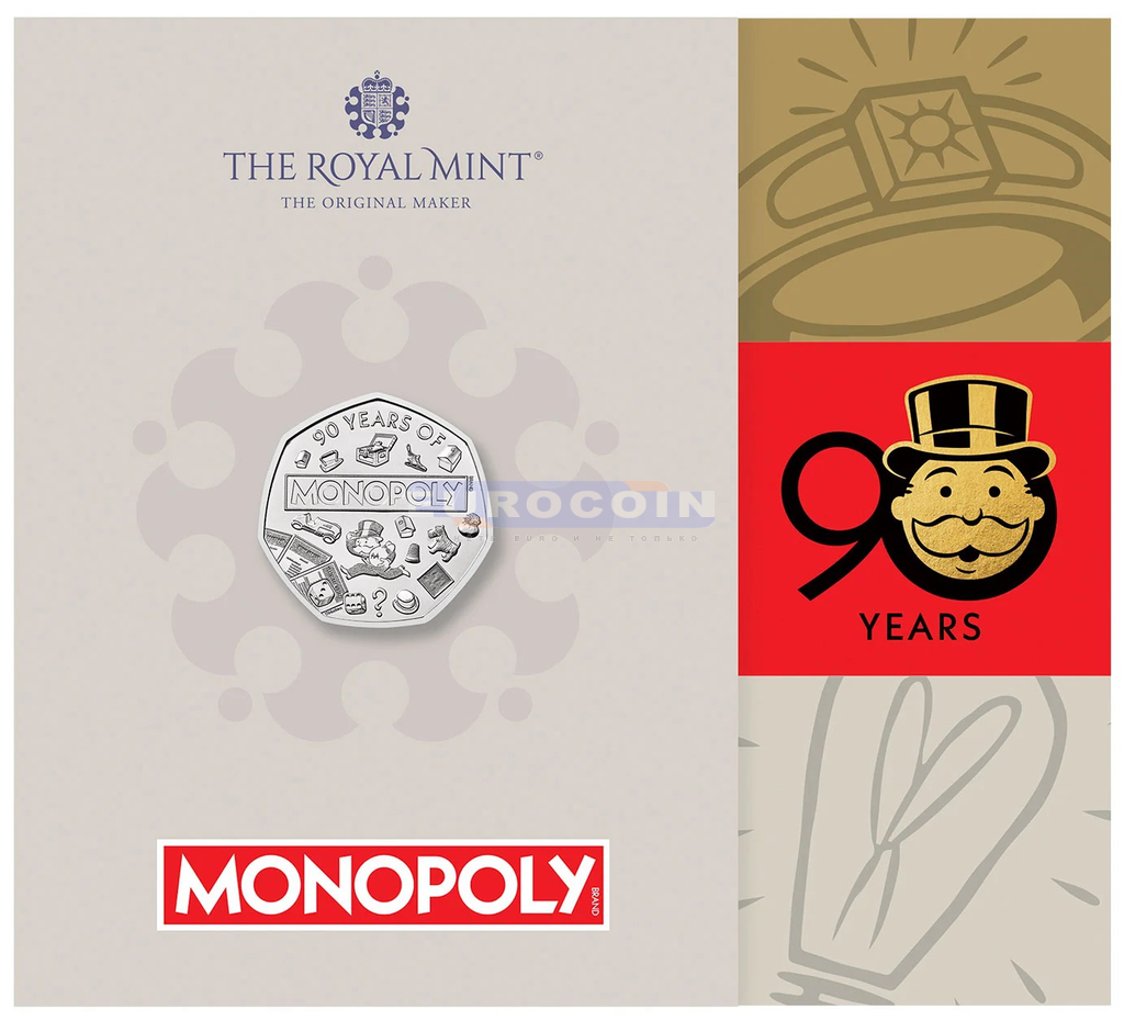 Великобритания 50 пенсов 2025, 90 лет Монополии