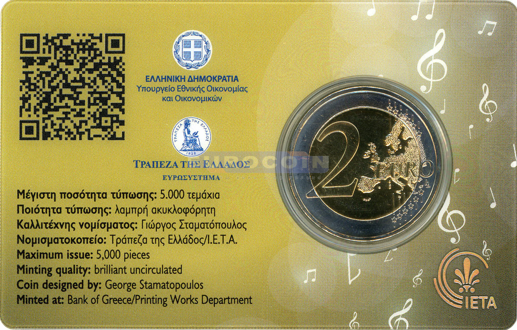 Греция 2 евро 2025, 100 лет со дня рождения Микиса Теодоракиса - BU