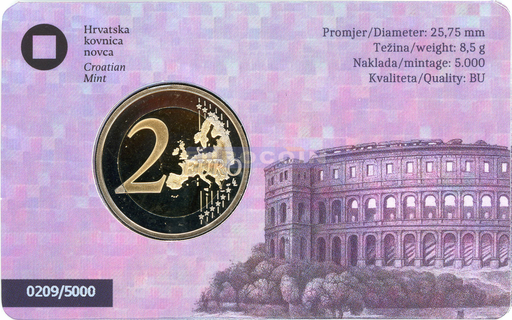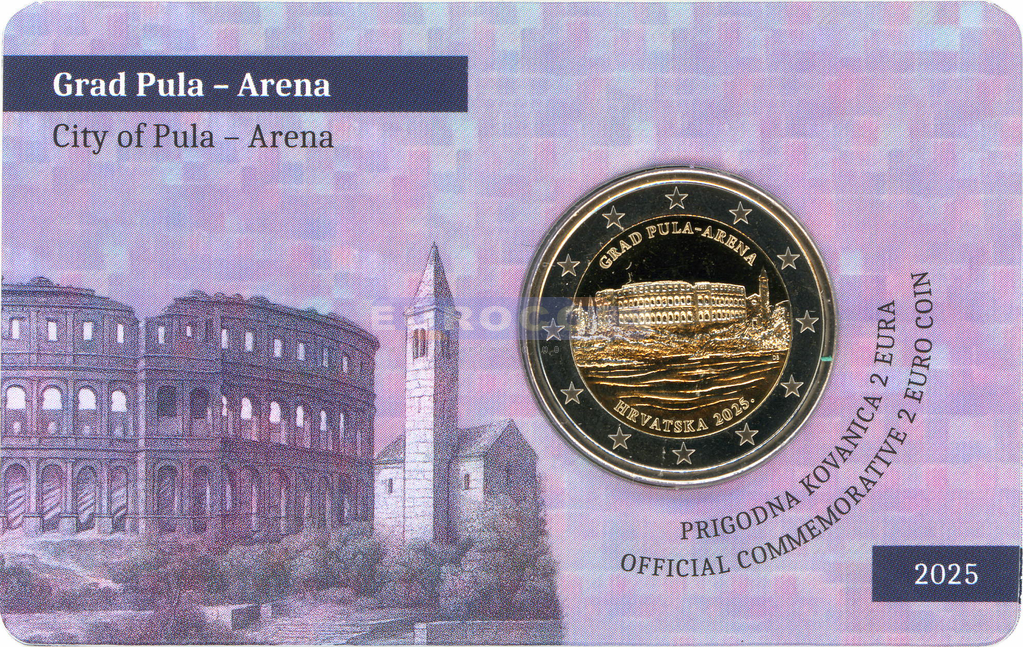 Хорватия 2 евро 2025, Амфитеатр Пулы - памятник древнеримской истории и архитектуры BU