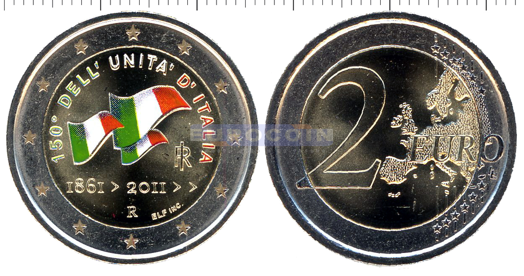 Цветная монета Италия 2 евро 2011, 150 лет объединения Италии