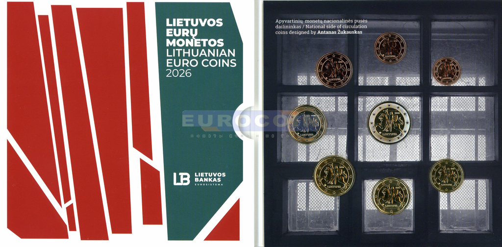 Литва, официальный годовой набор евро 2026 BU (8 монет)