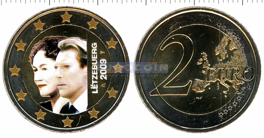 Цветная монета Люксембург 2 евро 2009, 90 лет вступления на престол Герцогини Шарлотты