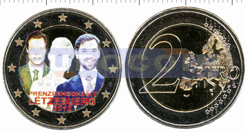 Цветная монета, Люксембург, 2 евро 2012, свадьба наследного Великого Герцога Люксембурга Гийома и графини Стефании де Ланнуа