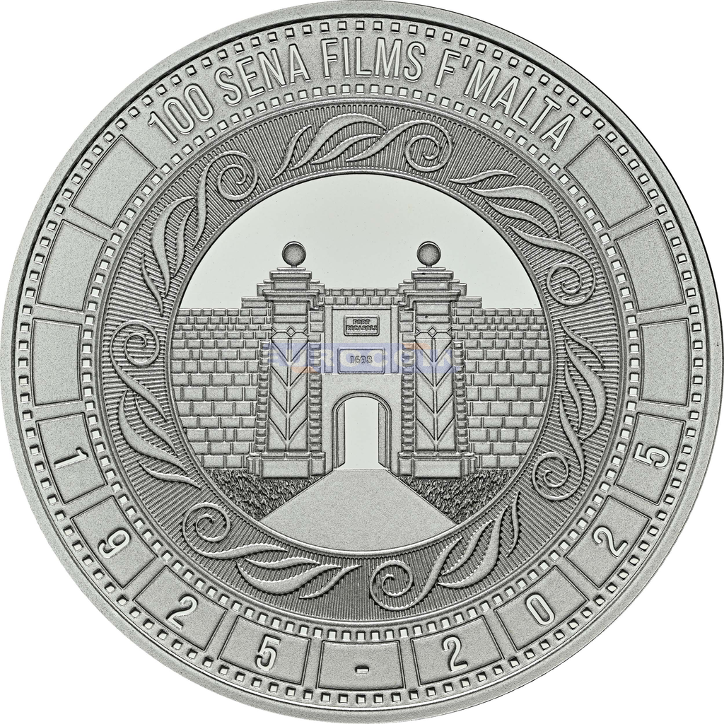 Мальта 10 евро 2025, 100 лет со дня основания мальтийской комиссии по кинематографии на Мальте