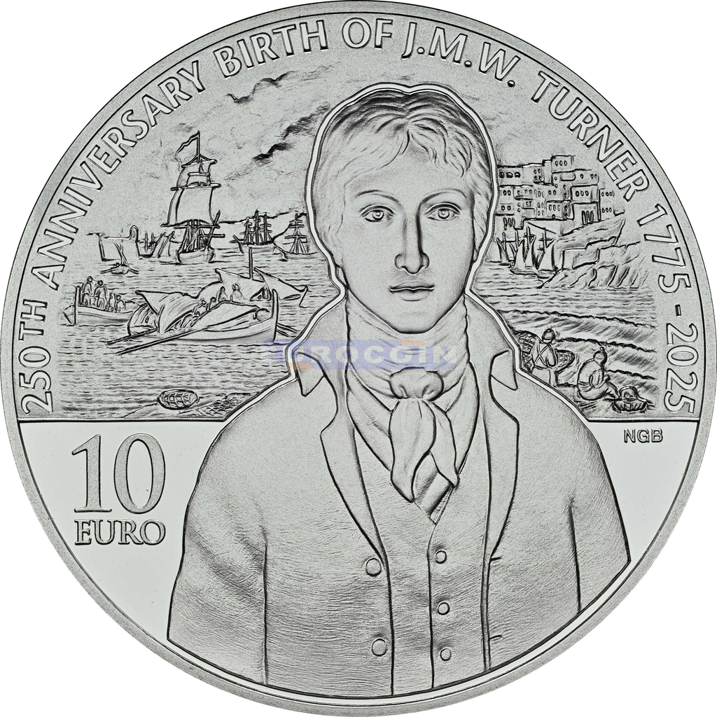 Мальта 10 евро 2025, 250 лет со дня рождения Уильяма Тёрнера