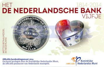 Нидерланды, 5 евро 2014, 200 лет Нидерландскому банку