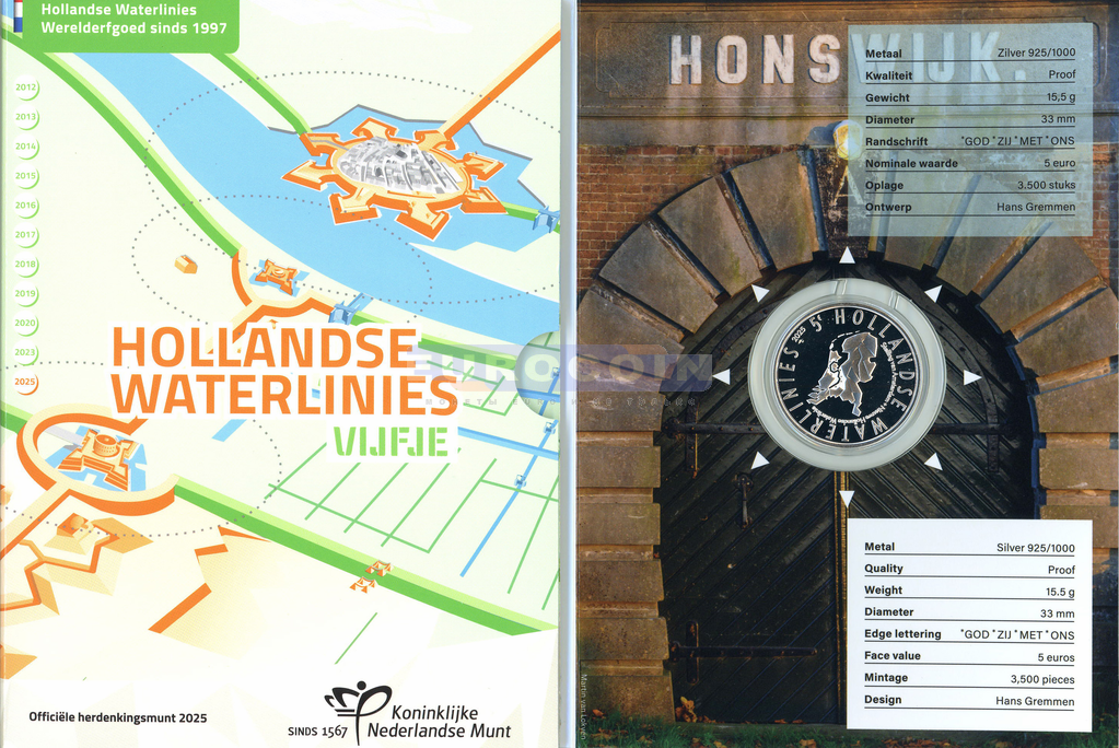 Нидерланды 5 евро 2025, Голландская линия водной обороны PROOF
