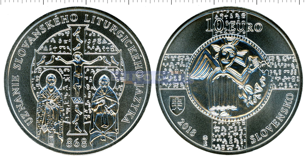 Словакия 10 евро 2018, 1150 лет Славянскому литургическому языку от святых Кирилла и Мефодия